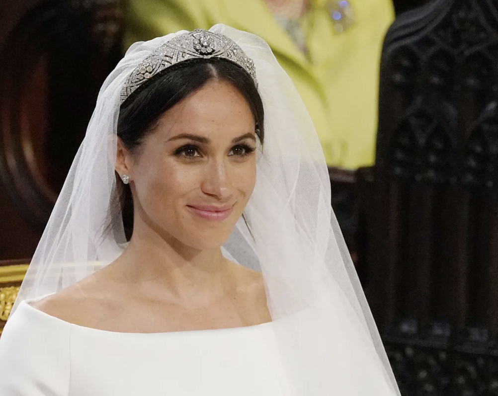 Meghan’s wedding makeup was, at the time, quietly revolutionary — and it still holds up. Her makeup artist spot-treated with foundation only where needed, allowing her freckles to come through naturally. The result was luminous skin, groomed brows, fluffy lashes, a shell-pink lip, and a soft blush — polished, sophisticated, and completely real.
